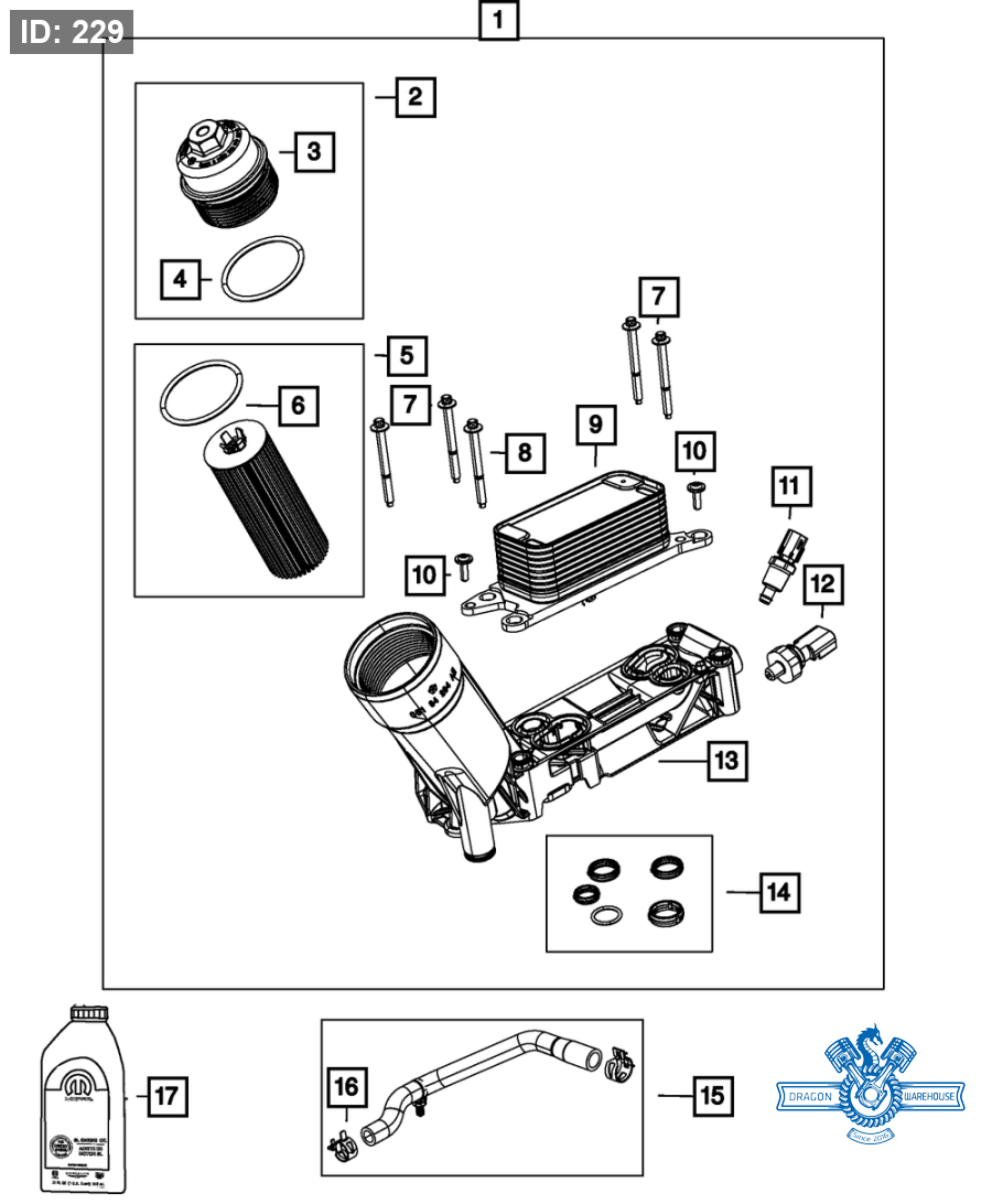 خرطوم مخرج مبرد الزيت الأصلي Mopar (68057473AE)