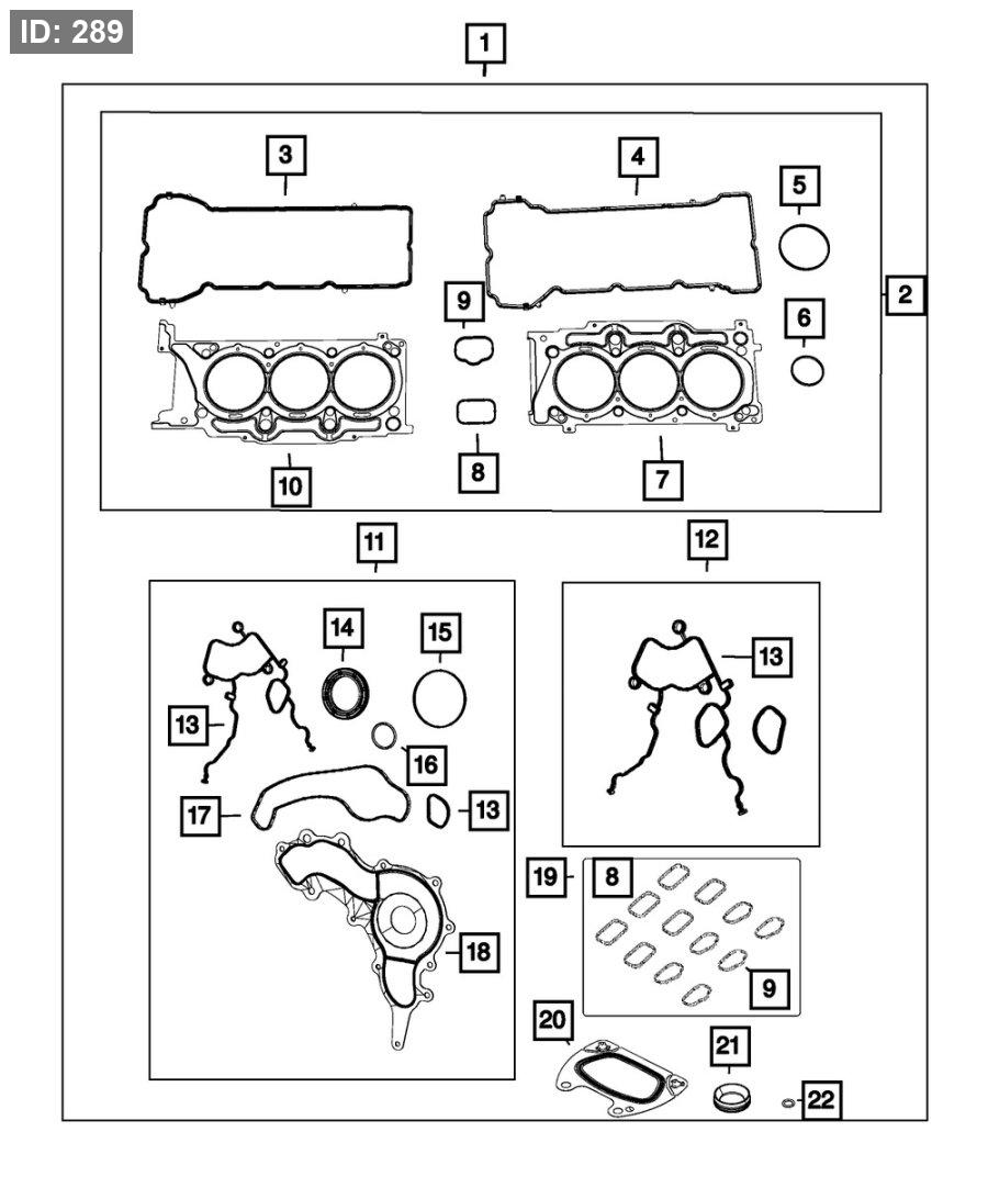 قد لا تكون الجلود (الكاسكيتات) المضمّنة في أطقم الجلود العلوية والسفلية للمحرك مشمولة ضمن هذا الطقم. في حال عدم تضمين أي جلد، سيتم توضيح ذلك أدناه.